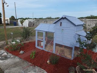 It had to be done. In February we purchase our new baby chicks and built them a chicken coop. After putting it all together and visiting with them each day, I decided the area needed some TLC to give them a homey look. Every home needs curbs appeal. It looked so barren before I put a little touch to it.